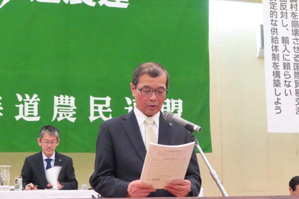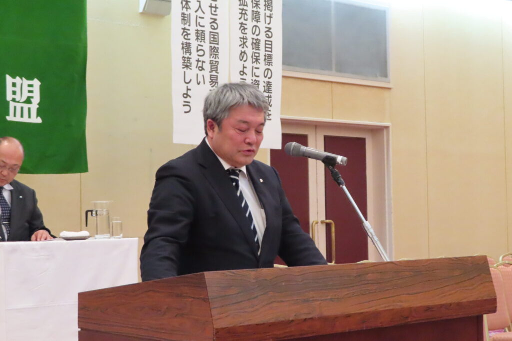 2026年度の運動方針は、運動のテーマを「基本計画の実効性確保と適正な価格形成・再生産可能とする直接支払制度の確立を求める運動」と掲げ、重点課題として、①食料安全保障の強化など食料・農業・農村基本計画の実効性確保、②適正な国境措置の確保と国際貿易交渉対策の強化、③「真の農政改革」政策提言<2023年改訂版>の実現運動の推進、④生産現場の視点に立った農業政策の実現、⑤生産者の声が反映される政策実現に向けた農民政治力の結集の5本を柱に、運動展開することを提起しました。