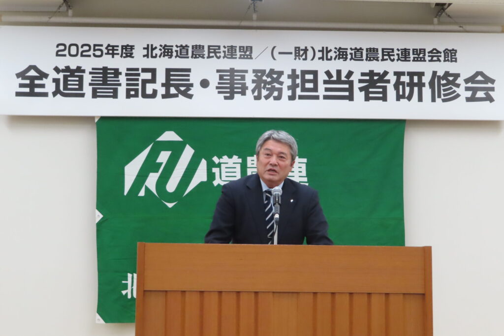 道農連は11月19日、北海道自治労会館で全道書記長・事務担当者研修会を2部構成で開催し、全道から各市町村組織の書記長や事務担当者ら約140名が参加しました。
